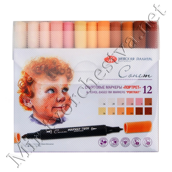 Набор спиртовых маркеров "Портрет", 12 цветов, Сонет