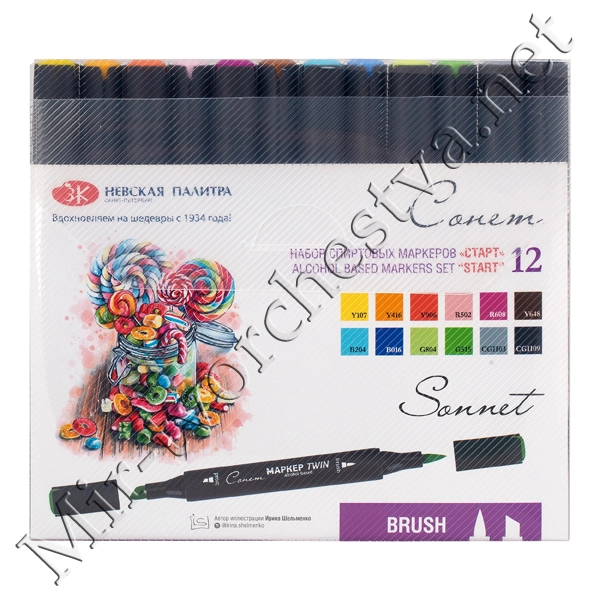 Набор спиртовых маркеров Twin Brush «Старт», 12 цветов, Сонет