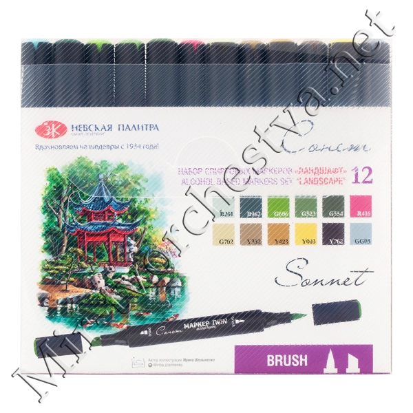 Набор спиртовых маркеров Twin Brush "Ландшафт", 12 цветов, Сонет