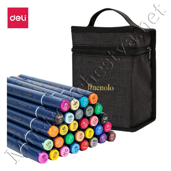 Набор спиртовых маркеров (2 пера:кисть+долото) 30 цветов в сумке-пенале, Finenolo