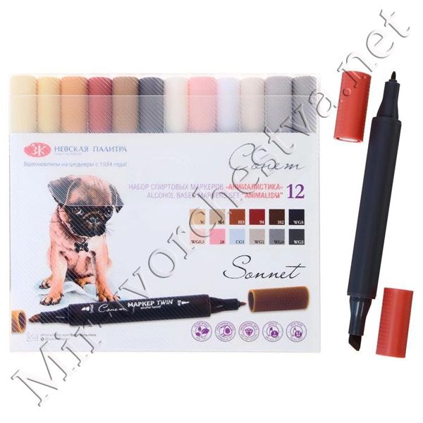 Набор спиртовых маркеров "Анималистика", 12 цветов, Сонет