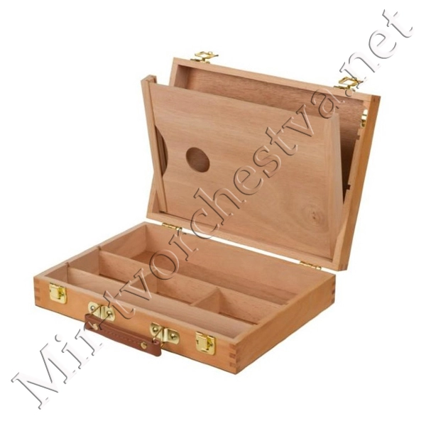 Ящик художника, с ячейками и пеналом для кистей и красок с палитрой №2, бук, 32x24x7,2 см, Сонет