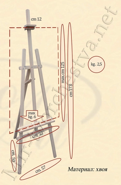 Мольберт напольный, Тринога (складной), на 2 подрамника/холста, высота полотна 1100мм, Сонет