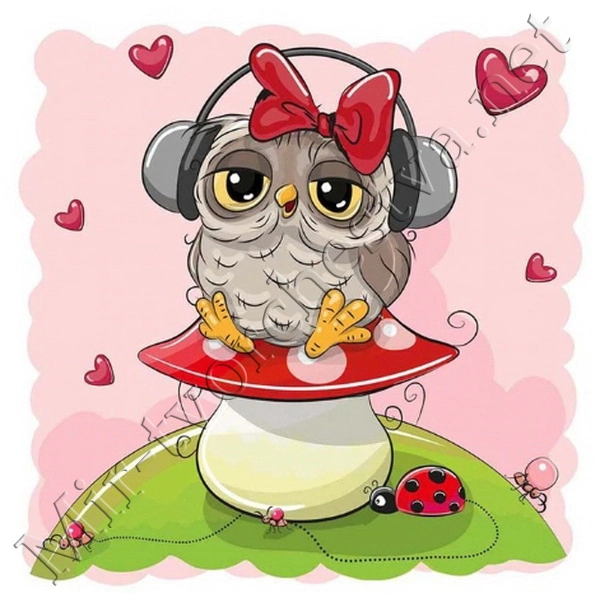 Алмазная мозаика, №ВЕ-022, "Совушка в наушниках", 21х26см