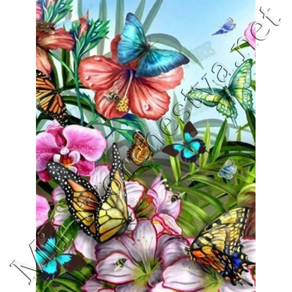 Алмазная мозаика, Бабочки в цветах, №BE-041, 21х26см