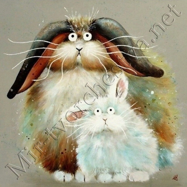 Алмазная мозаика, №ВЕ-057, "Парочка кроликов", 21х26см