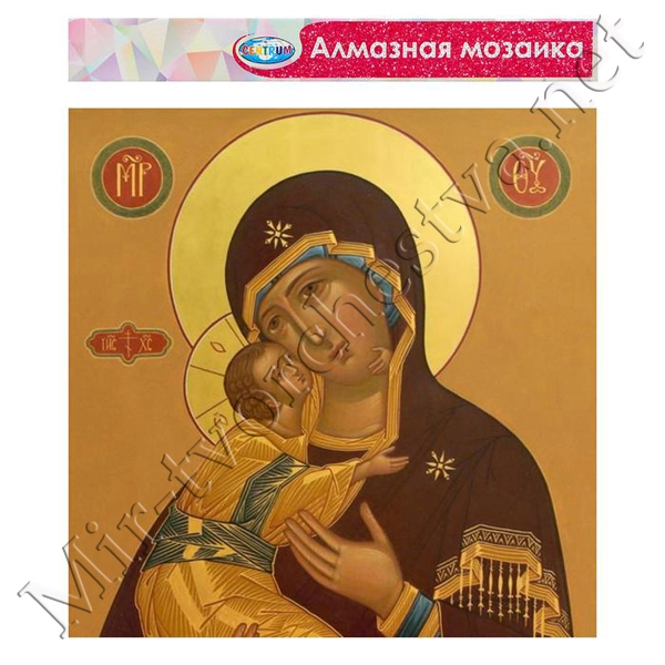 Алмазная мозаика без подрамника, частичное заполнение «Богородица Владимирская» 40x50см
