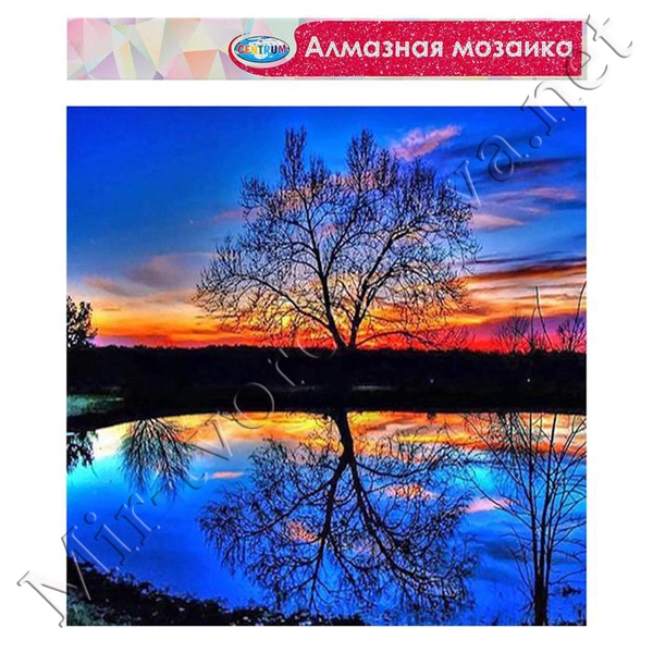 Алмазная мозаика без подрамника, частичное заполнение «Закат над озером» 40x50см + наклейка