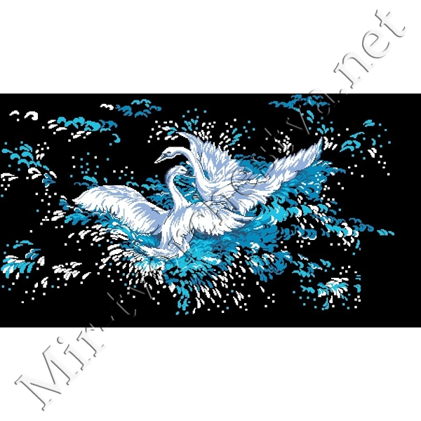 Алмазная мозаика, Лебеди на чёрном, №1374, 46х36см