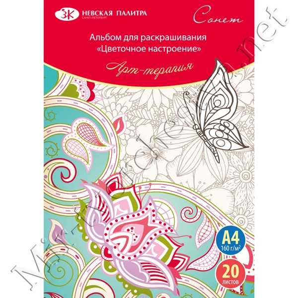Арт-терапия "Флора", А4, 160 г/м2, 20 листов, Сонет