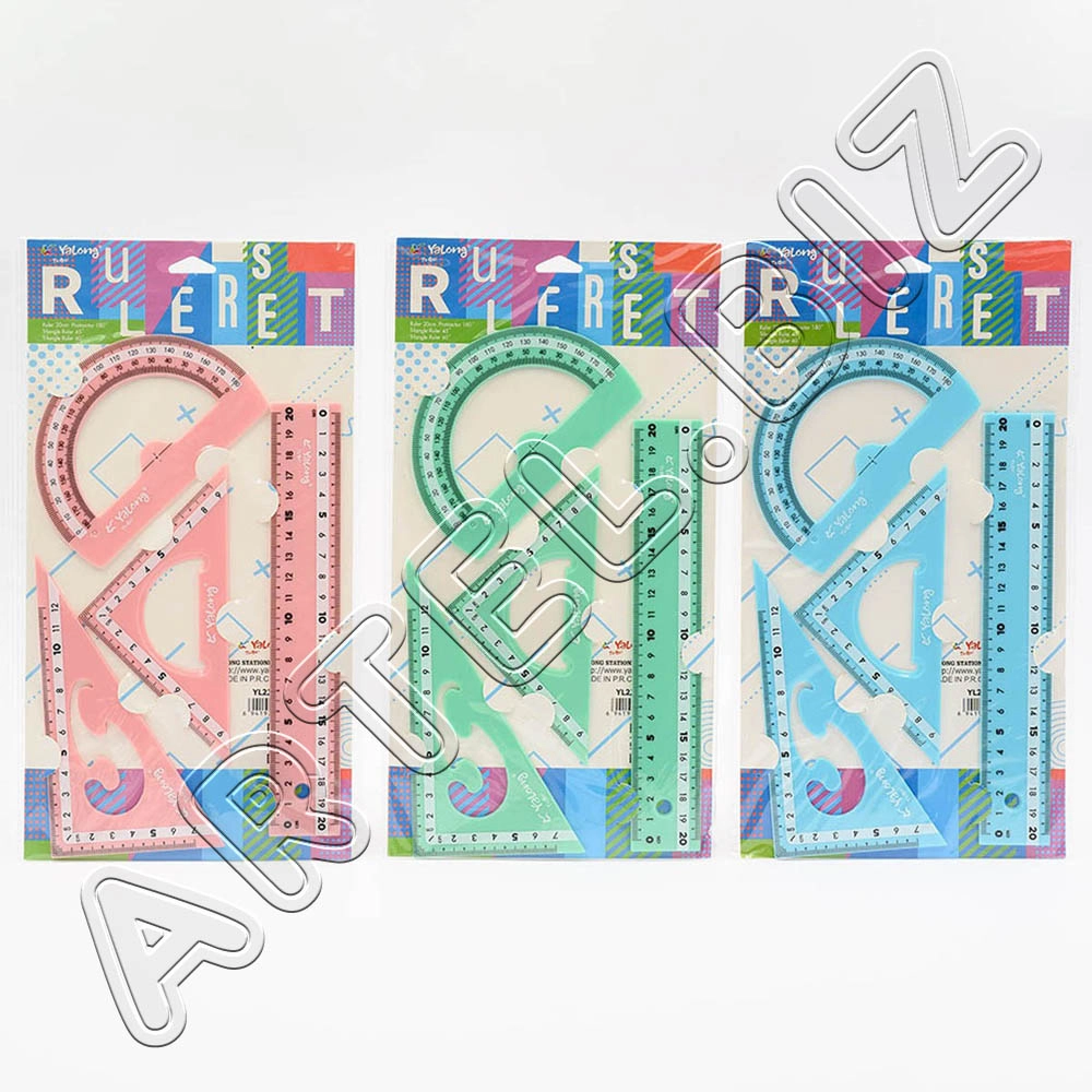 Набор линеек COLOR 4 предм. (линейка20см,треугольн,45.60.транспорт), Зелёный, арт.YL233601-20