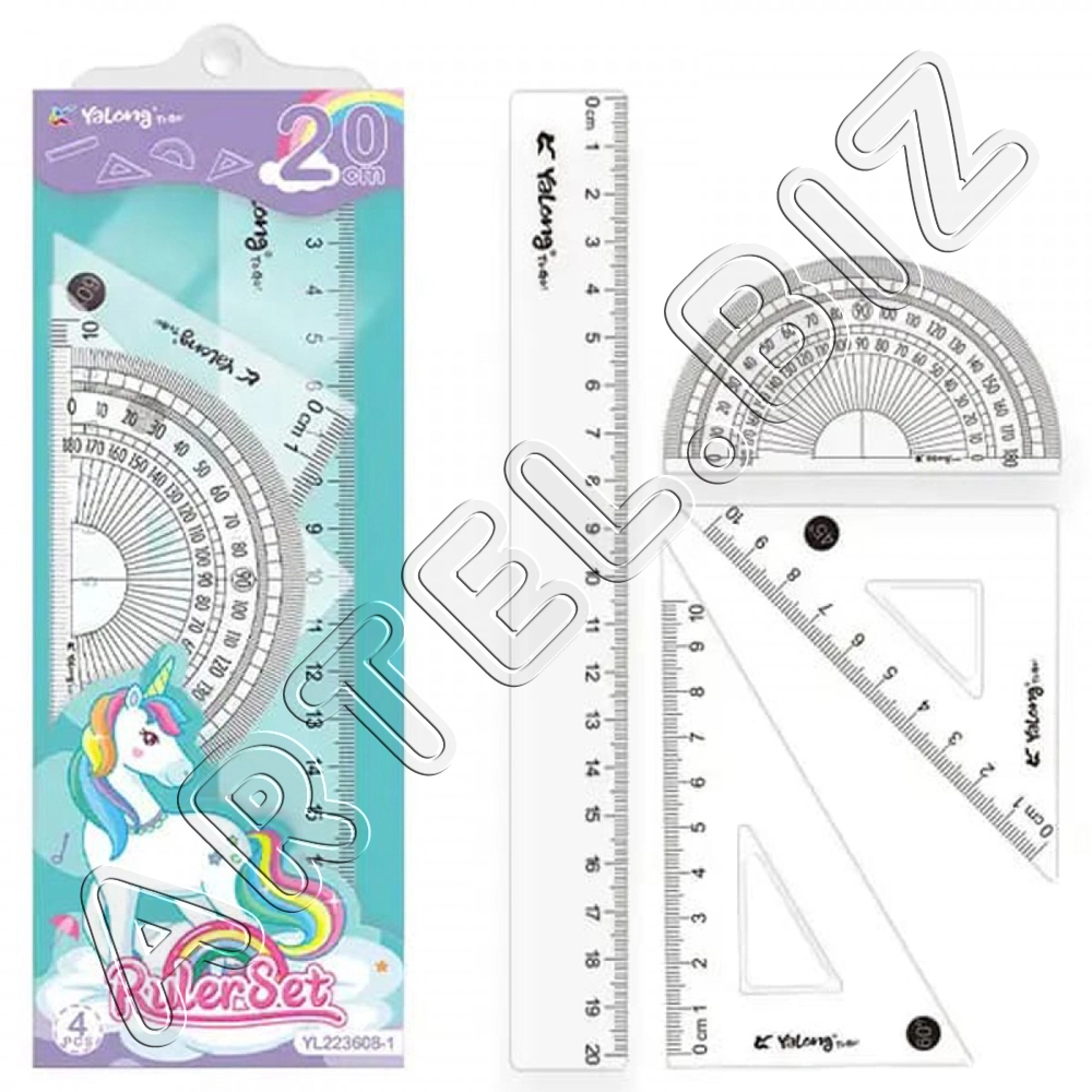 Набор линеек пласт. Yalong ЕДИНОРОЖКА 20см 4пред., Голубой, арт.YL223608-1