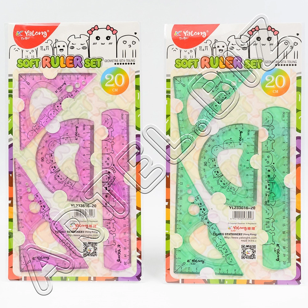 Набор геометр..гибк.пластик 4предм.(лин,20см+2угольн.+транспор) COLOR, Зелёный, арт.YL233616