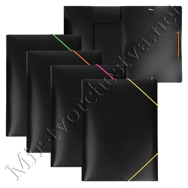 Папка на резинке А4, 500 мкм, Calligrata, корешок 15 мм, чёрная, МИКС (неоновые цветные резинки)