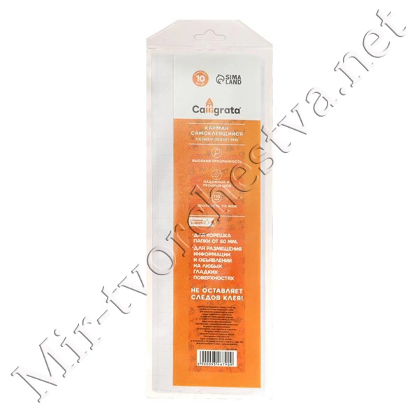 Карманы самоклеящиеся, комплект 10 штук, Calligrata, 191x35 мм, 110 мкм, на корешок папки шириной 50 мм и любые гладкие поверхности