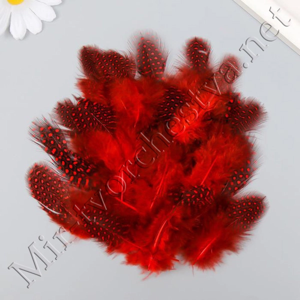 Перо декоративное фазана "Рябь. Красная" набор 20 шт h=5-7 см 9604857