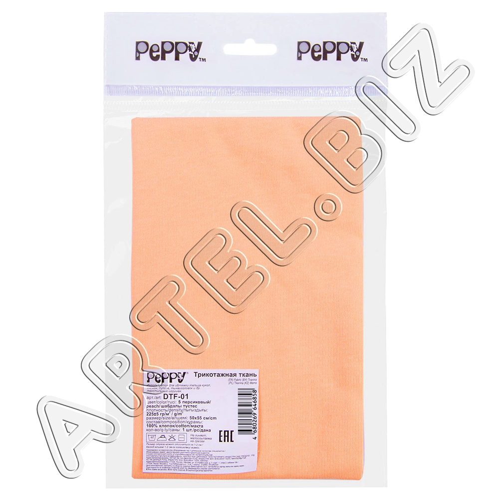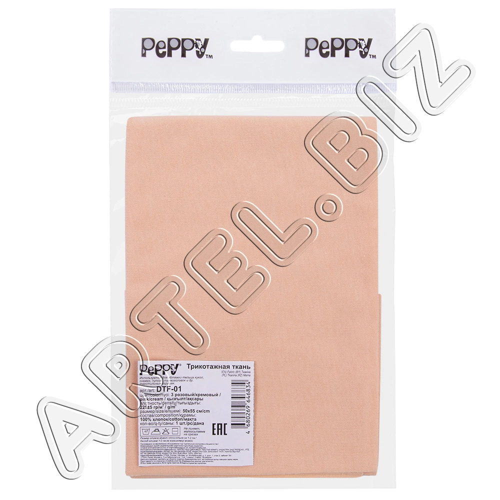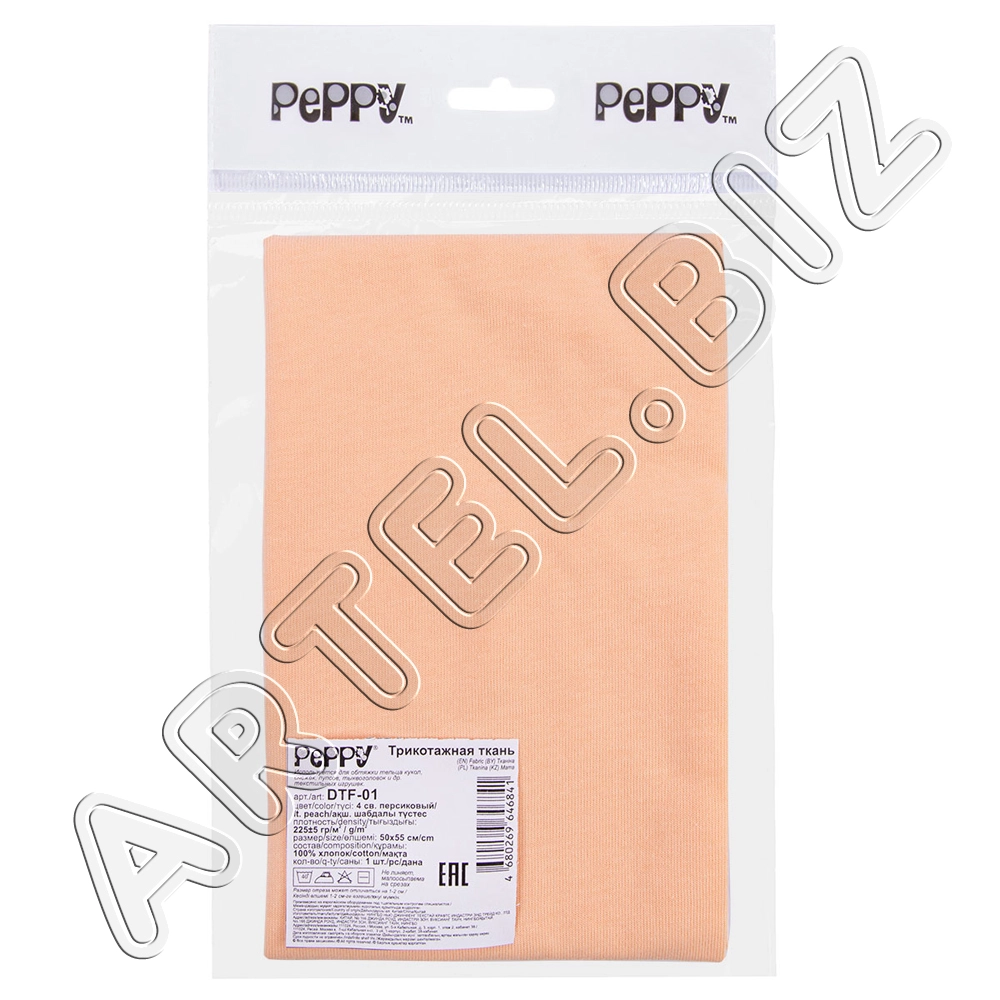 PEPPY Трикотаж кукольный DTF-01 ФАСОВКА 50x55 см 225 г/кв.м +/- 5 100% хлопок №05 персиковый