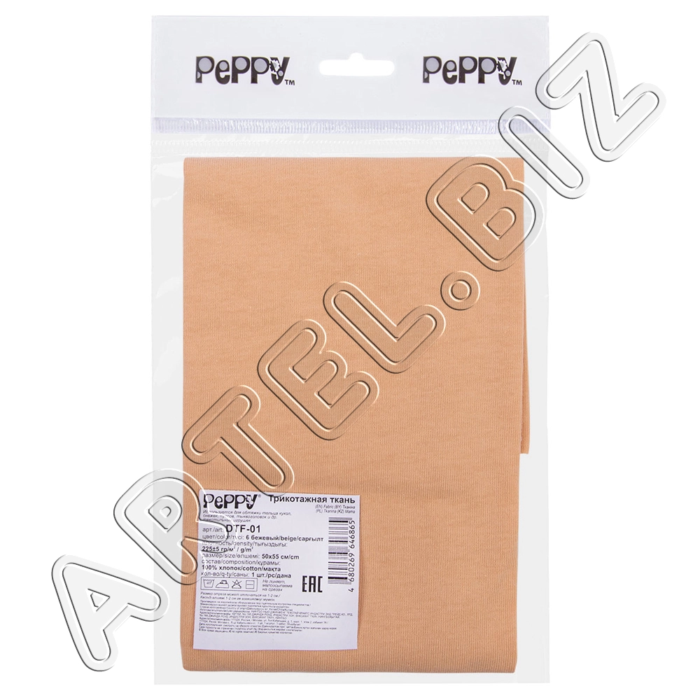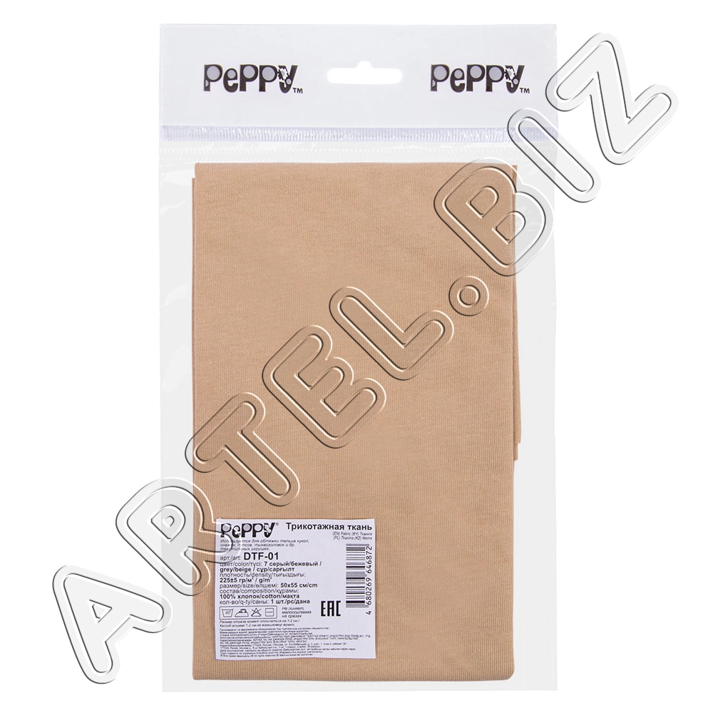 PEPPY Трикотаж кукольный DTF-01 ФАСОВКА 50x55 см 225 г/кв.м +/- 5 100% хлопок №06 бежевый