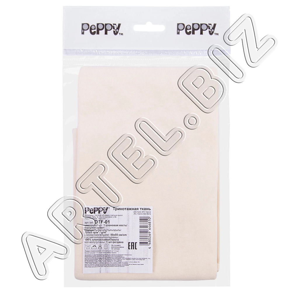 PEPPY Трикотаж кукольный DTF-01 ФАСОВКА 50x55 см 225 г/кв.м +/- 5 100% хлопок №01 слоновая кость