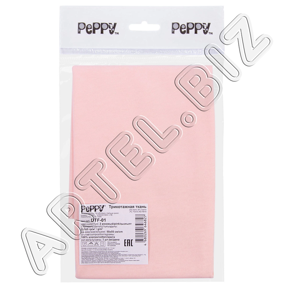 PEPPY Трикотаж кукольный DTF-01 ФАСОВКА 50x55 см 225 г/кв.м +/- 5 100% хлопок №02 розовый