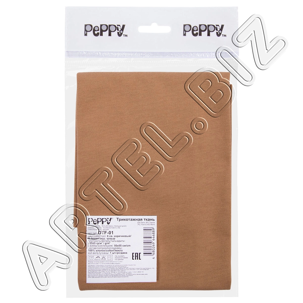 PEPPY Трикотаж кукольный DTF-01 ФАСОВКА 50x55 см 225 г/кв.м +/- 5 100% хлопок №08 св.коричневый