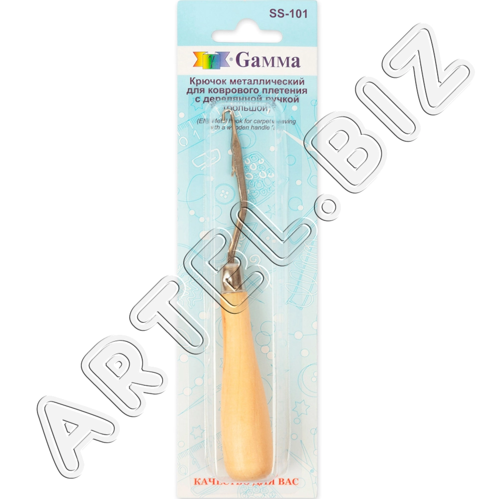 Gamma SS-101 крючок для коврового плетения металл дерево в блистере с деревянной ручкой