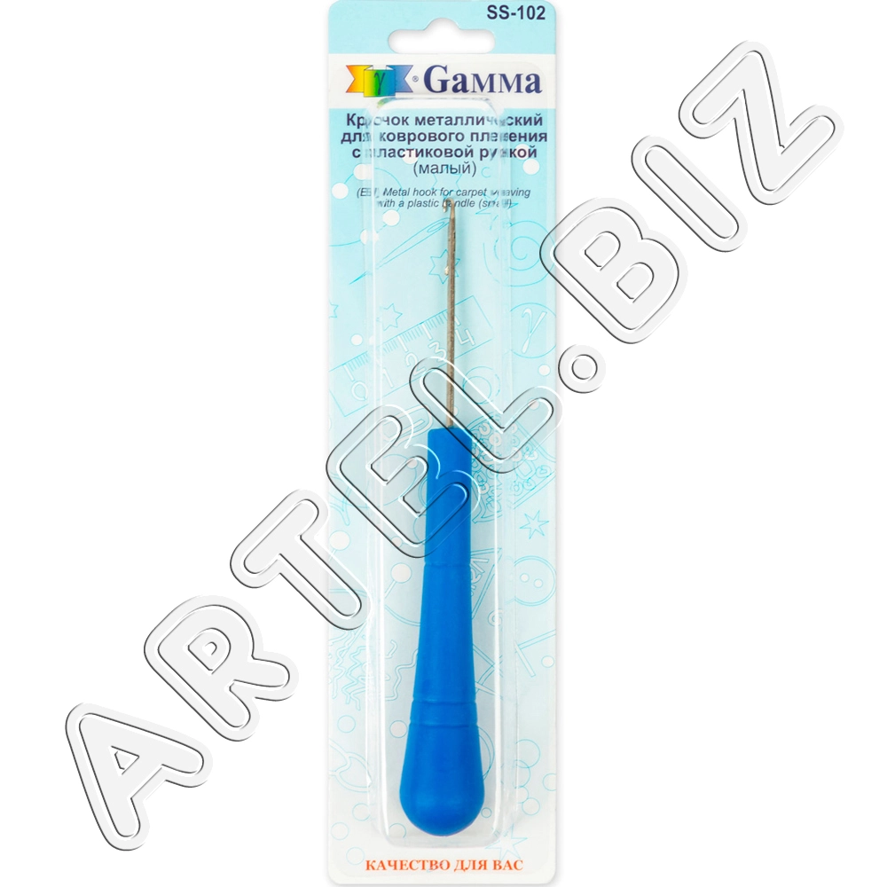 Gamma SS-102 крючок для коврового плетения металл пластик в блистере с пластиковой ручкой