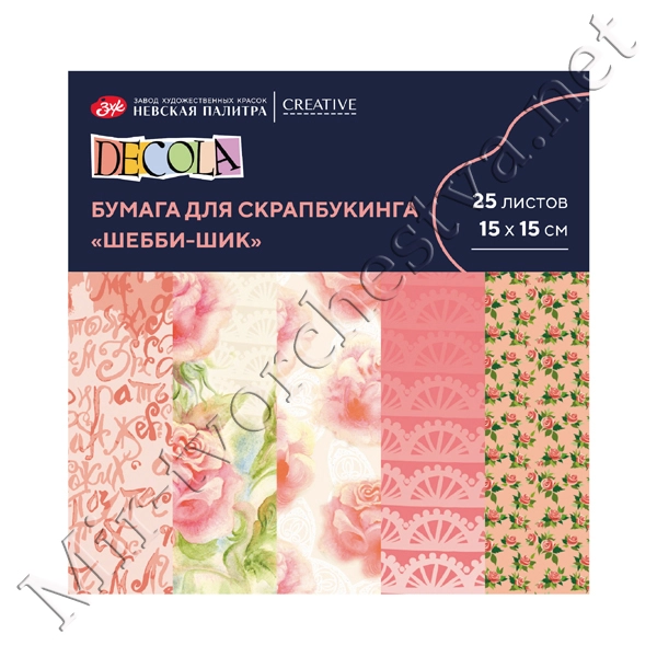 Набор бумаги для скрапбукинга "Шебби-шик", 15x15см, 5 сюжетов, 25 листов, Decola