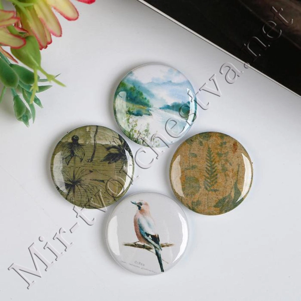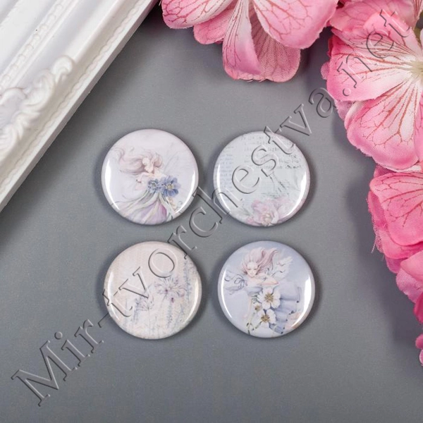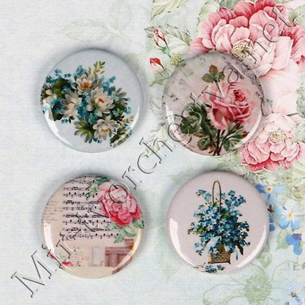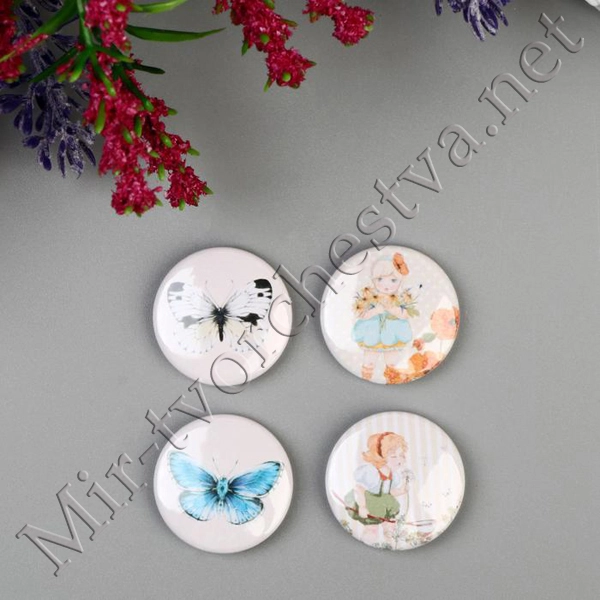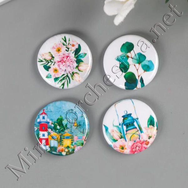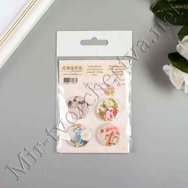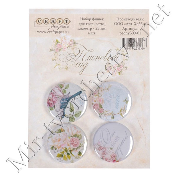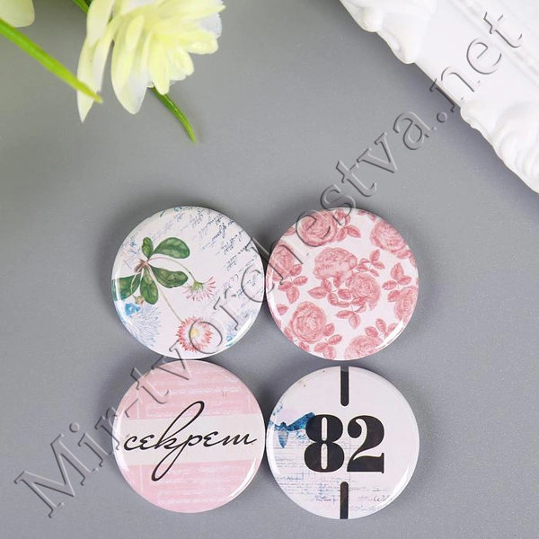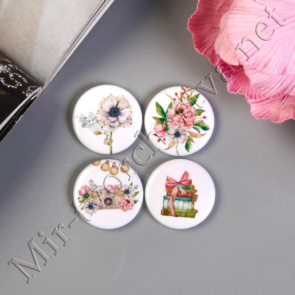 Набор фишек для скрапбукинга (4 шт) "Пионовый сад" d=2,5 см 3537975