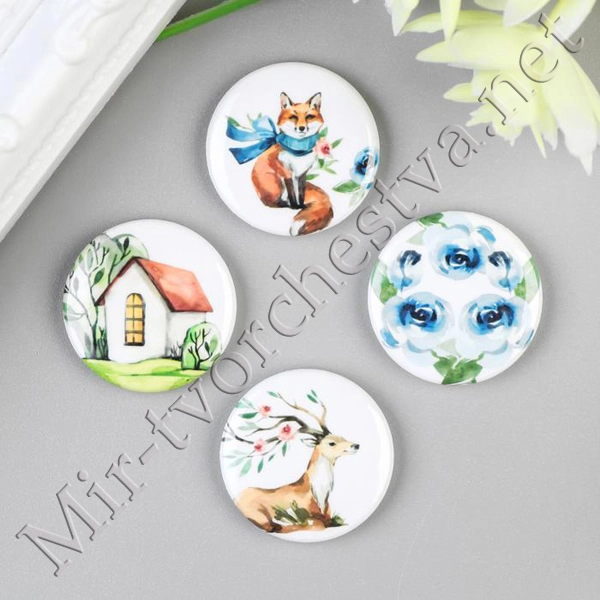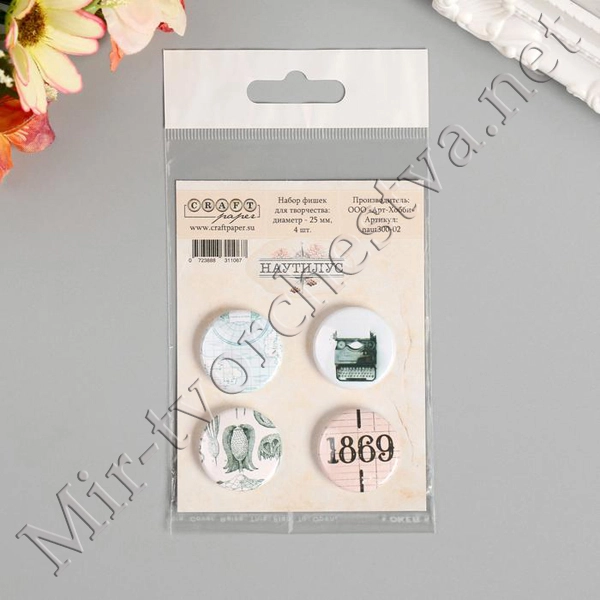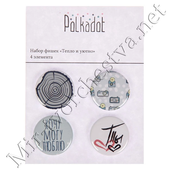 Набор фишек д/скрапбукинга (4 шт) "Тепло и уютно"d=2,5 см 2935221