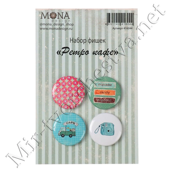 Набор фишек для скрапбукинга (4 шт) "Ретро кафе" 3900325