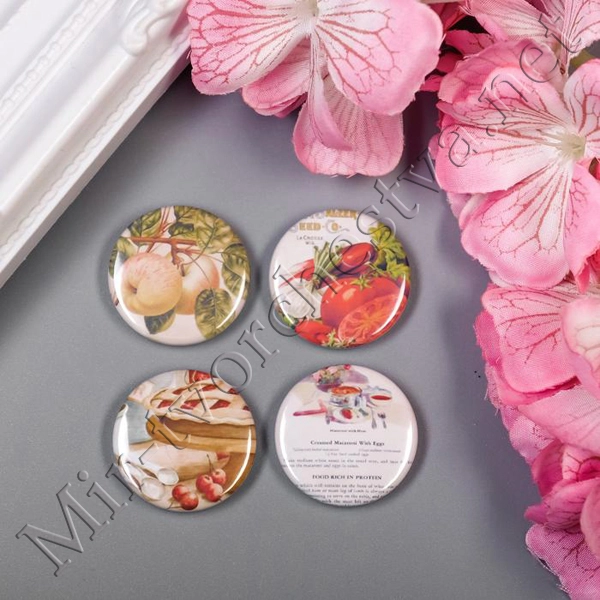 Набор фишек для скрапбукинга (4 шт) "Завтрак на веранде (Люблю готовить)" d=2,5 см 3876454