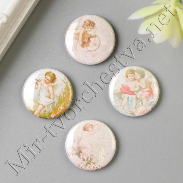 Набор фишек для скрапбукинга (4 шт) "Нарисуй мне любовь" d=2,5 см 2935245
