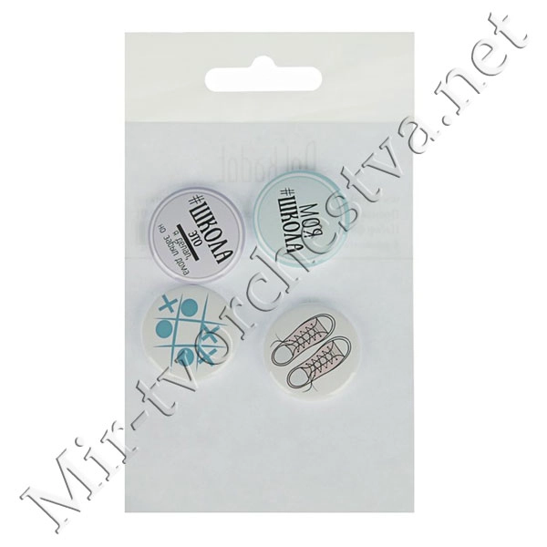 Набор фишек д/скрапбукинга "Школа" 4 шт, d=2,5 см 2463088