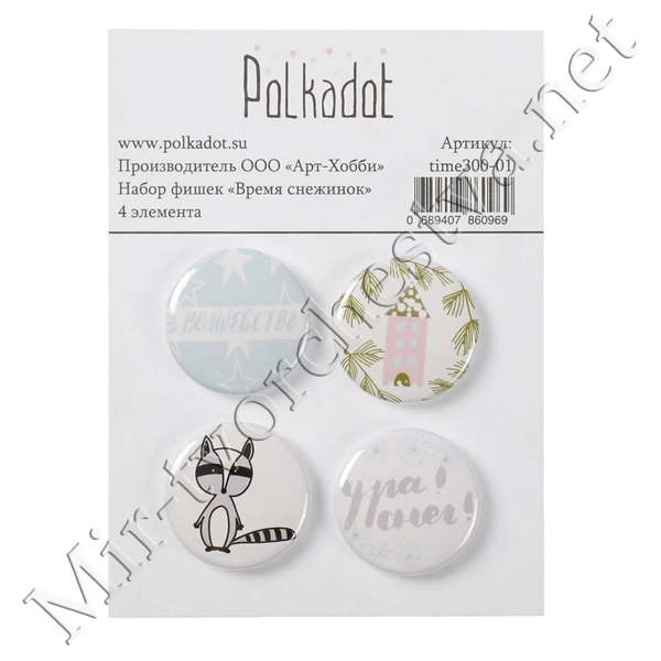 Набор фишек (4 шт) "Время снежинок" d=2,5 см 3895126
