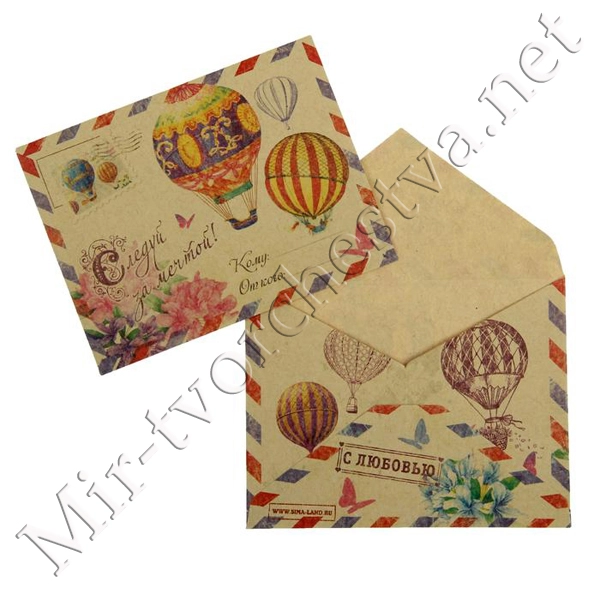 Конверт подарочный "Следуй за мечтой" 7,5х9,8см