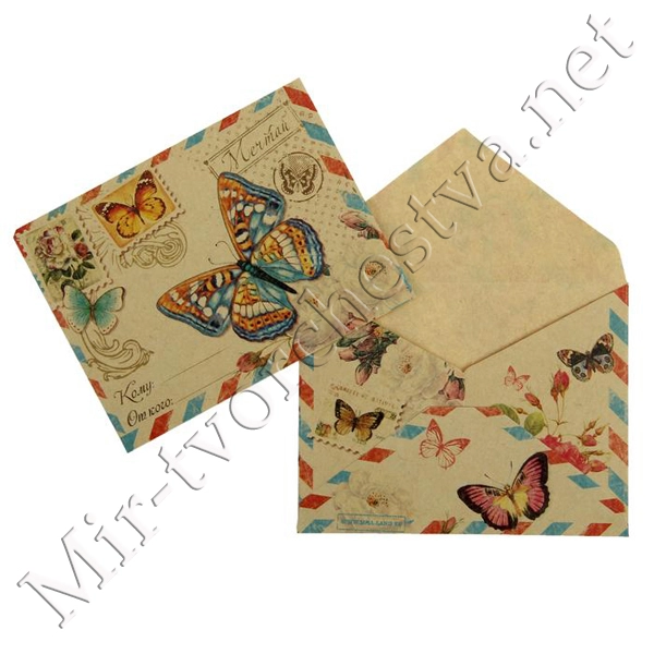 Конверт подарочный "Бабочки" 7,5 х9,8 см 1021075