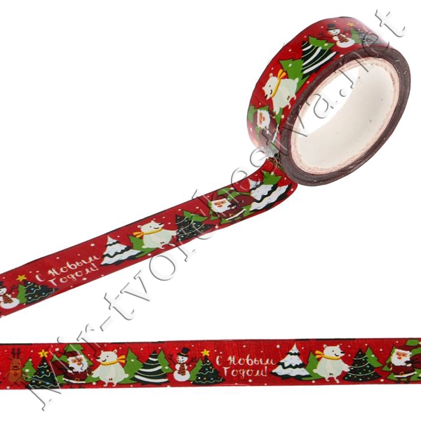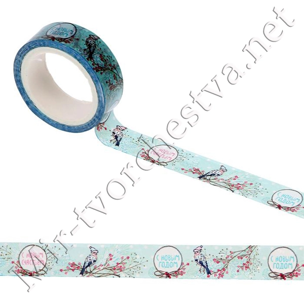 Декоративная клейкая лента "Снегири", 1,5смх10м