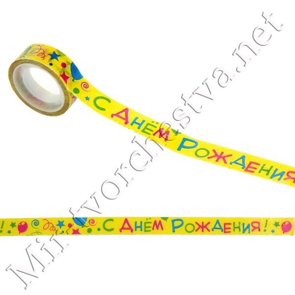 Скотч декоративный "С Днем Рождения", 1,5смх10м