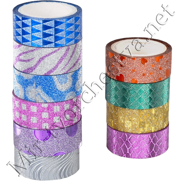 Скотч декоративный, 12ммx3м, ГЛИТТЕР, микс