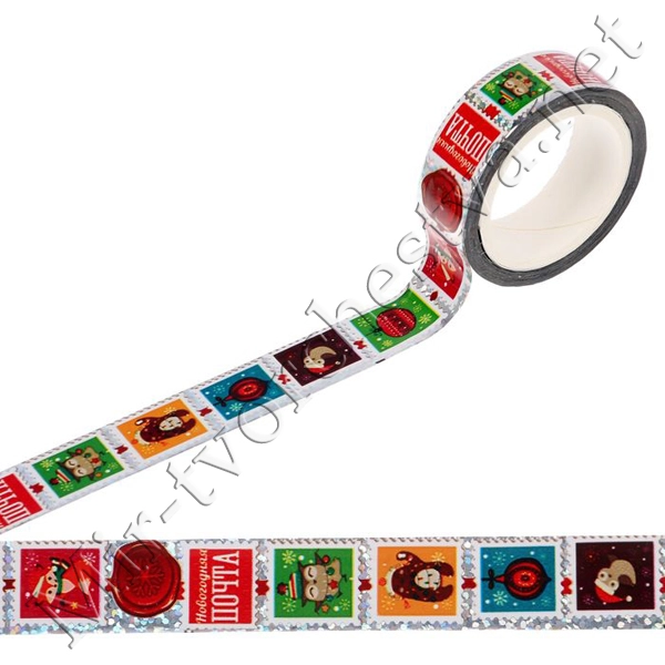 Декоративная клейкая лента голографическая "Лесная почта", 1,5смх10м