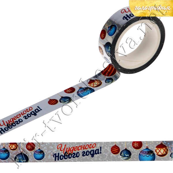 Декоративная клейкая лента голографическая "Волшебный Новый год", 1,5смх10м