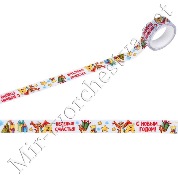 Декоративная клейкая лента "С Новым годом!": Медвежонок Винни и его друзья, 1,5х10м