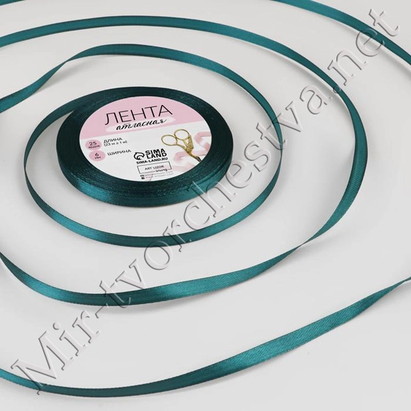 Лента атласная, 6мм, цвет Бирюзовый №148