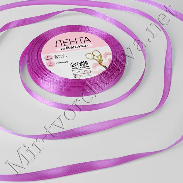 Лента атласная, 6ммx23, цвет тёплый фиолетовый №46