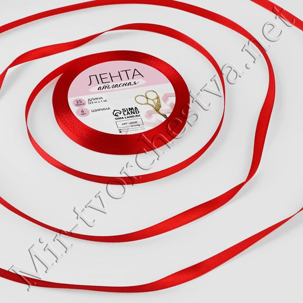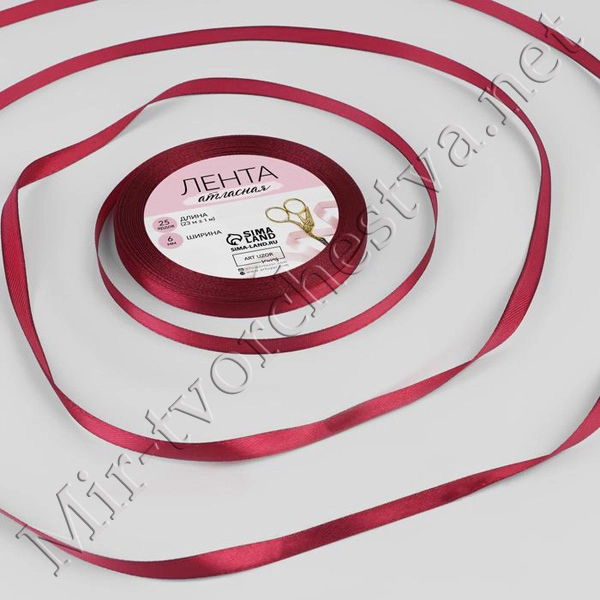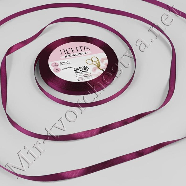 Лента атласная, 6мм, цвет Вишнёвый №37