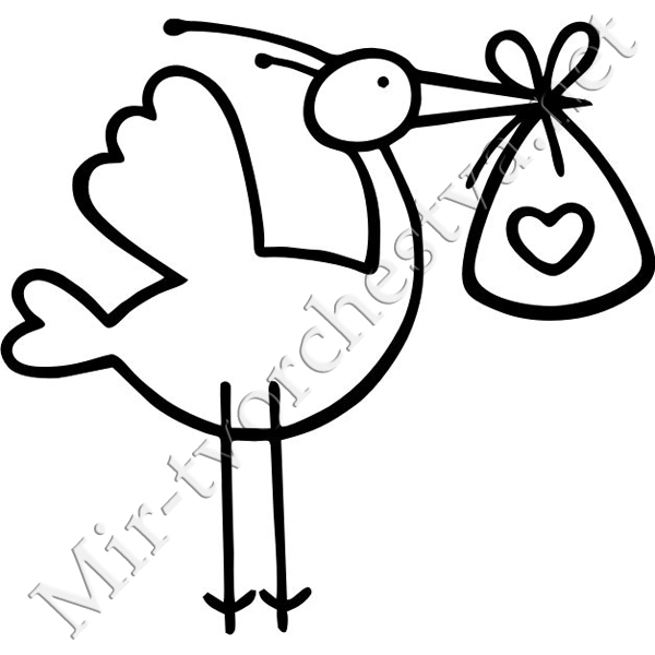 Силиконовый штамп, Аист с подарком, 3,8х3,6см