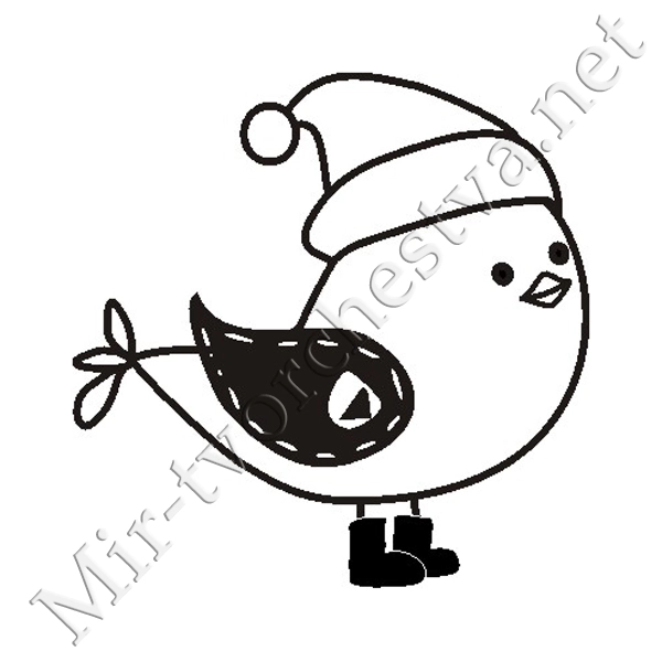 Силиконовый штамп, Птичка в шапке и валенках, 3,9х3,9см