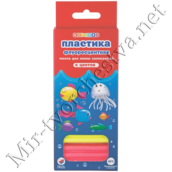 Набор пластики для лепки, ФЛЮОРИСЦЕНТНЫЙ, (6 цветов) 120 г, Цветик