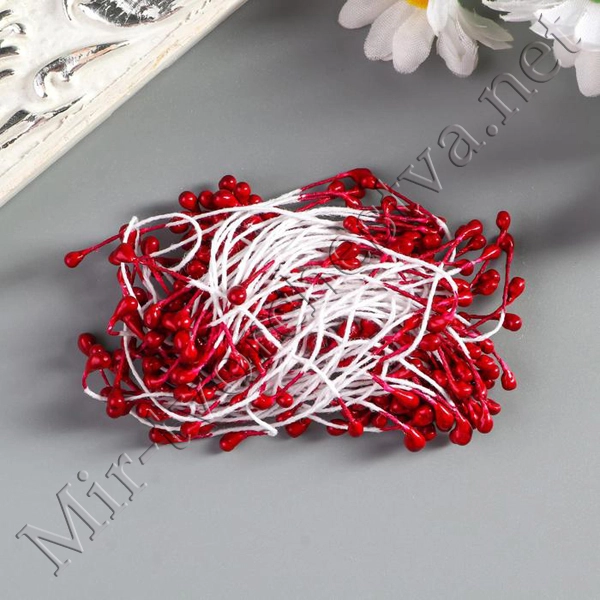 Тычинки для искусственных цветов "Капельки бордовые" (набор 130шт.) длина 6см